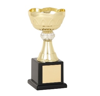 • Gold Toned Bowl (X small) without Handles on a Wooden Base