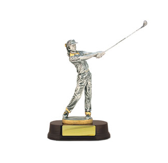 The Female Player Trophy features a professional replica of a female player standing on a dark base with space for your customised promotional message, logo or branding on an engraveable plate, great for golf days, corporate events, conferences, awards nights, staff achievements and thoughtful, memorable gifts delivering your promotional message with impact.