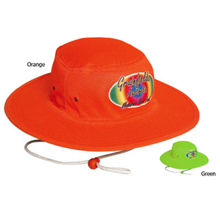 The Luminescent safety hat with wide brim and chin strap with large area for displaying your promotional branding, logo or message customised onto the promotional product to suit your specific promotional requirements maximising visibility and brand distribution, great for outdoor events, conferences, golf days, trades people, universities, promotional giveaways and sports teams where sun smart protective promotional merchandise will be the most practical way to promote your positive promotional message or marketing campaign while keeping your potential customers sun safe.