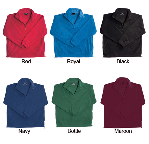 The Toronto Polar Fleece 100% polyester adults fleece jumper featuring a 1/2 zip on front, high zipped collar, two front side pockets, comfortable to wear and large space for your embroidered promotional logo, message or branding customised onto the promotional product to suit your individual promotional marketing requirements and maximise visual advertising potential, great for corporate sports or triathlon events, production staff, practical fun giveaways, client gifts, charity events, trades people, specialised promotional events, conferences, sports teams and high schools where your positive message or advertising instantly becomes a moving self promoting billboard that travels to unlimited places, getting your exciting promotional message out there and seen by thousands of potential new future customers.