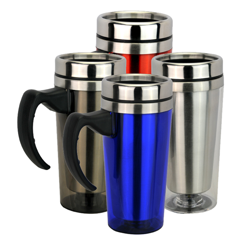 The Knightsbridge Travel Mug features a tall body, translucent plastic exterior, stainless steel interior, large grip handle, easy open/close lid for a convenient no spill travel and large space for your printed promotional branding, message or logo customised onto the promotional product and to suit your individual promotional marketing or advertising requirements, great for practical client or customer gifts, in office use, corporate meetings, functions, conferences, trade shows, conventions, sales staff or corporates on the go representing your brand, specialised events, trades people, promotional events, seasonal gifts and promotional campaign giveaways where your new and exciting advertising message needs an attention grabbing promotional product that will deliver your details with impact, getting your promotional message out into the market place with guaranteed continuous brand exposure.