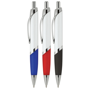 The Beverly Silver White Pen features an oval barrel, coloured grip, white upper barrel, silver push button retractable ballpoint and ample space for your companies customised printed promotional branding, logo or message featured on the promotional product in prime viewing position and maximising your individual promotional marketing or advertising potential and successful brand distribution, great for practical giveaways, awards, functions, client meetings, conferences, in office use, conventions, trade shows, sales staff or corporates on the go representing your image, functions, charity events, cafes, restaurants, hotels, company show bag additions, historical company milestones, customised event memorabilia and specialised events where your important promotional details require a long lasting impression with professional impact, keeping your promotional message moving while out in the market place.